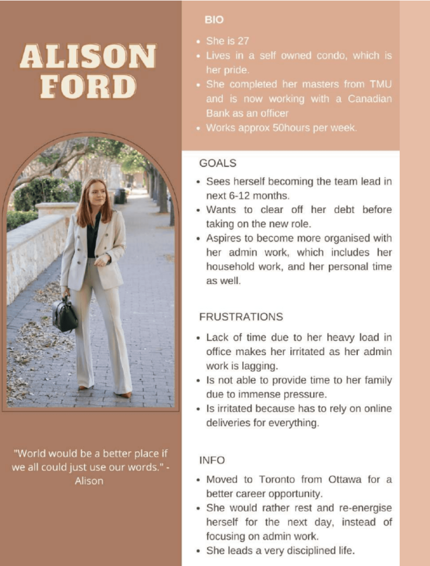 By understanding these additional details about our persona we can create more targeted questions for user interviews and gain a deeper understanding of what our users actually want when they shop for clothes at Zara. This will help us tailor our website and marketing strategies to better meet their needs and preferences.